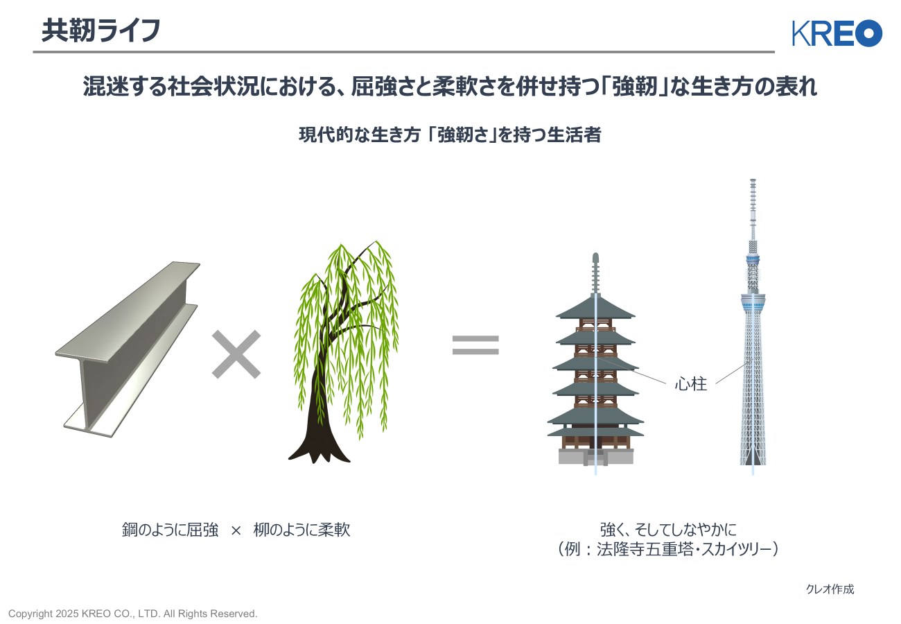 「共靭ライフ」とは、生活者が互いにしなやかに変化し連帯しながら前向きに生きていくことで、結果的に人生を主体的に舵取りし、充足した暮らしをデザインしていくという潮流です。