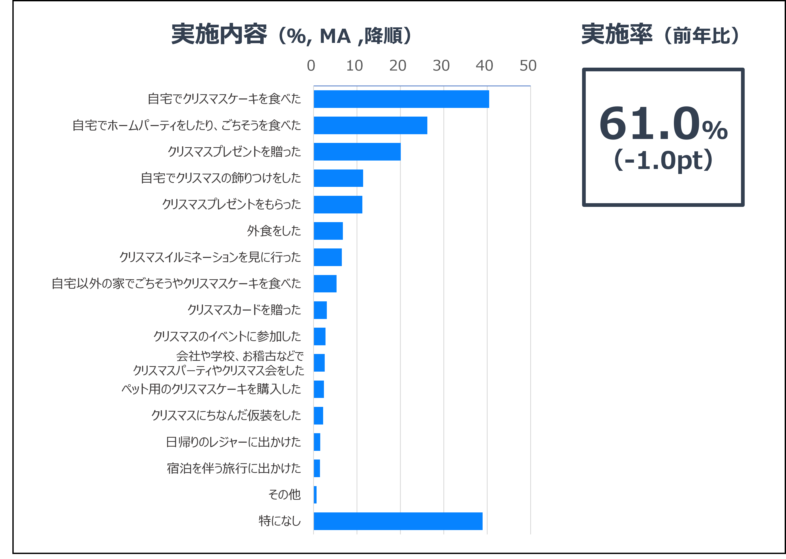 2025年のクリスマスの実施率は61.0%で、昨年より1.0ポイント減少しています。